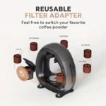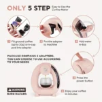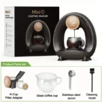 Characteristics: 1. Compact size (Mini personal coffee Maker) 2. Smart temperature regulation 3. Detachable tank (Facilitates cleaning and refilling) 4. Quick & Flavorful Brewing (tasty coffee ready in minutes)
