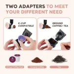 Instructions for use: Connect the power supply. Pour water without exceeding the maximum level. Press the switch; the orange light will flash to warm up for approximately 20 seconds. The white light will turn on after preheating. Fill Disposable K-Cups and reattach the adapter. Press the switch; the white light will flash during brewing. Enjoy your coffee.