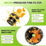 • 🍹【SEPARATION FUNCTION & LOCKING DESIGN】This cold press juicer adopts a unique separation technology, with 60 RPM slow extrusion, effectively preventing the mixing of juice and pumace, which not only eliminates filtration but also makes the juice taste more pure. The locking design of the juice outlet not only prevents the juice from dripping, but also effectively controls the dosage