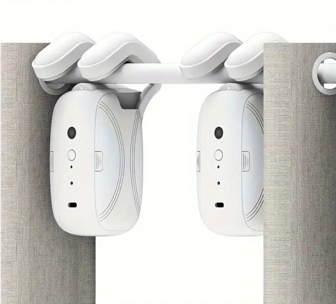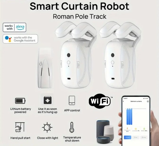 Wi-Fi Smart Roman Rod Track Shade Robot, Voice Control, USB Charging, App Control, Compatible with Alexa and Google Home, Rechargeable Lithium Battery, ABS Material, Easy to Install, 2-Pack